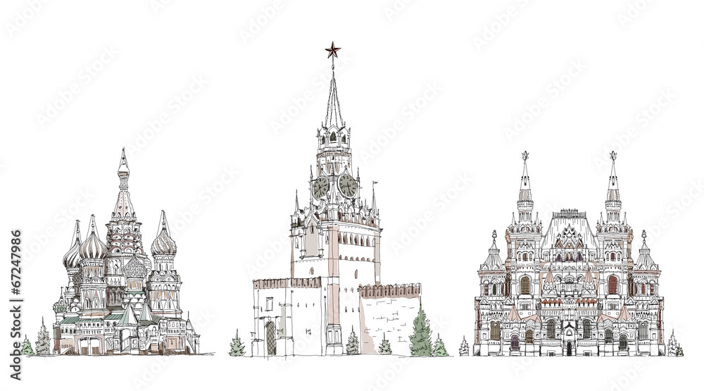 Obraz na plátně Sketch collection, Moscow famous buildings
