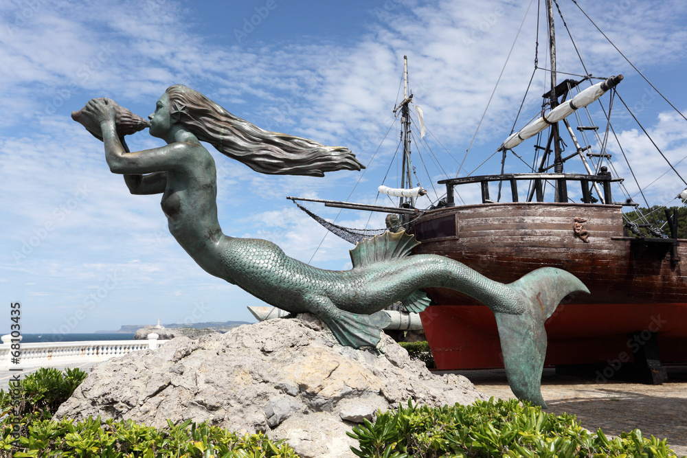 Obraz na plátně Mermaid sculpture at historic ship in Santander, Spain