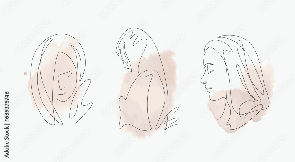 Obraz na plátně Religious inspirational card set or posters with biblical quotes and praying woman, Line Art Illustration