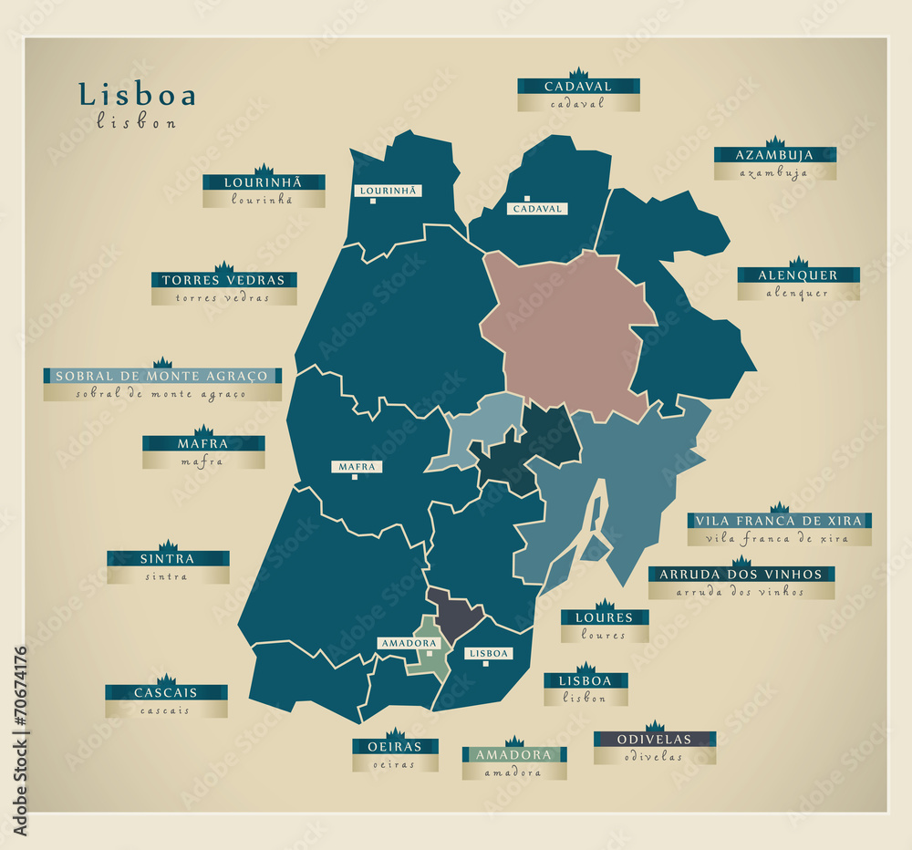 Obraz na plátně Modern Map - Lisboa PT