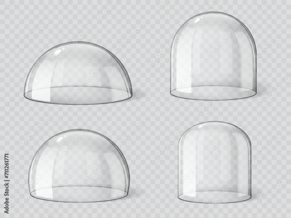 Obraz na plátně Glass dome, isolated glossy bell sphere or transparent cover, realistic vector 3D