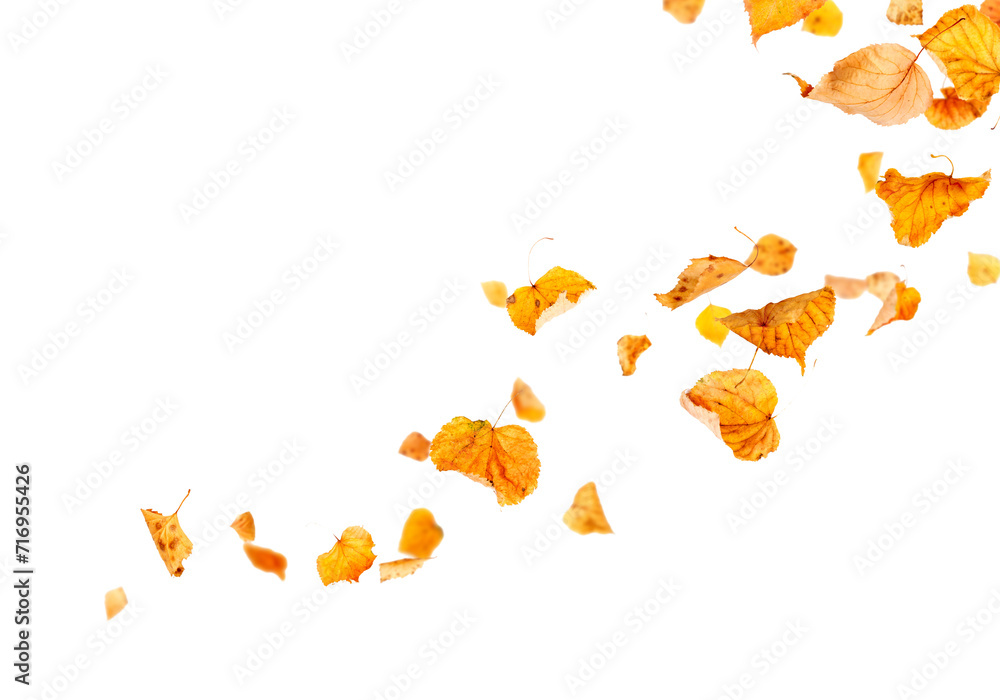 Obraz na plátně isolated autumn leaves blowing in the wind png overly on white background