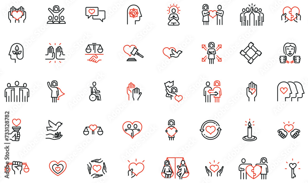 Obraz na plátně Vector Collection of Linear Icons Related to Equal Human Rights, Harmony Relationship, Charity and Love