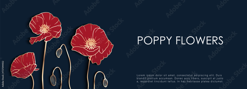 Obraz na plátně Luxurious floral design with red poppies on a dark blue background