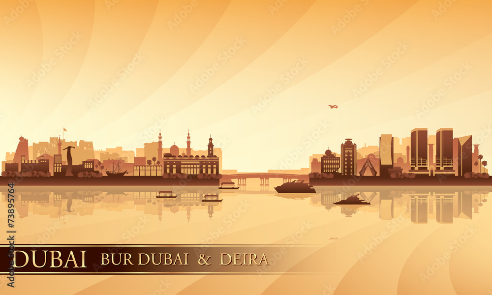 Obraz na plátně Dubai Deira and Bur Dubai skyline silhouette background