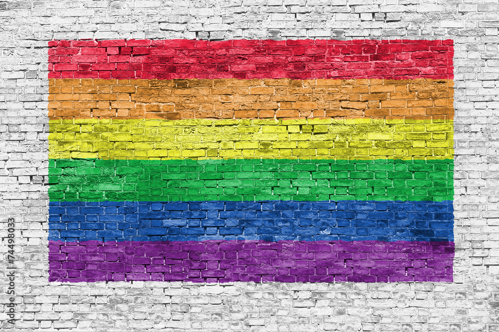 Obraz na plátně Duhová vlajka namaloval přes cihlové zdi