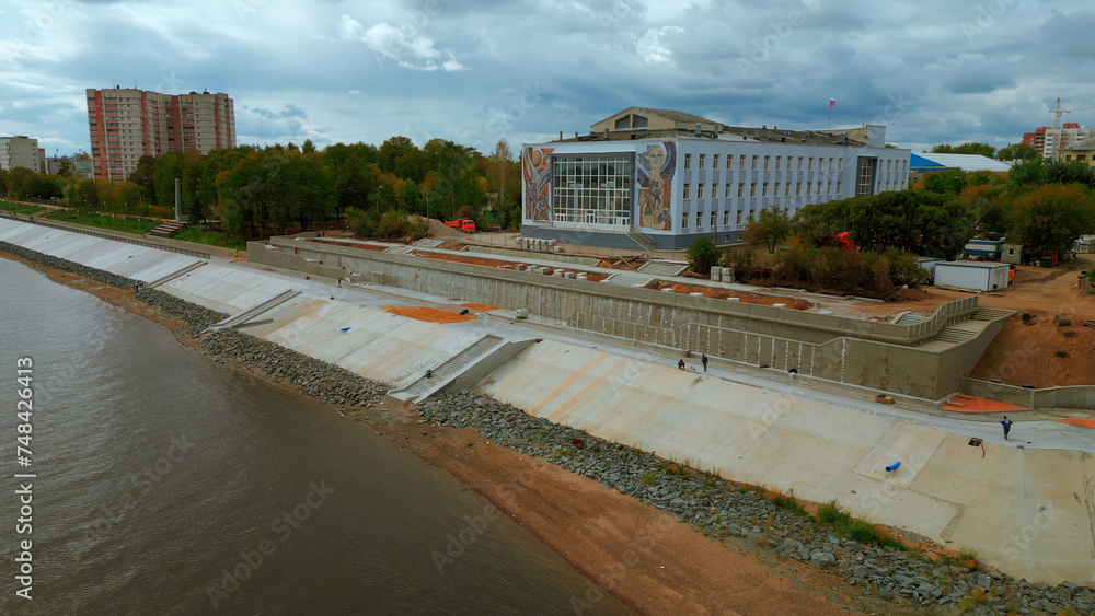 Obraz na plátně Aerial view of city embankment with construction site