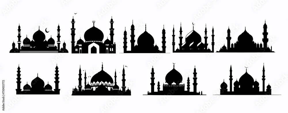 Obraz na plátně set of mosque silhouettes, with various model variations, for ornament design and other needs