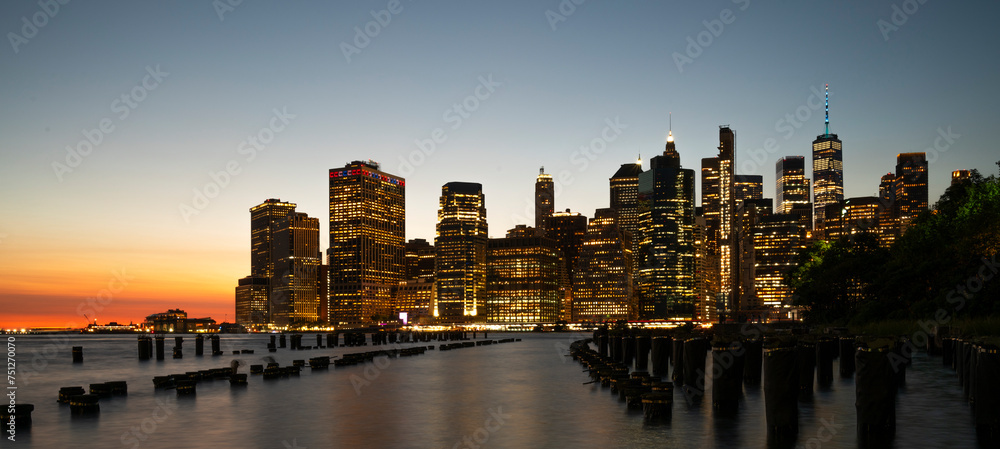 Obraz na plátně Twilight tones frame the silhouette of a New York City skyline, capturing the transition from twilight to night over an urban skyline