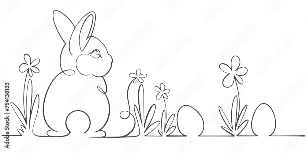 Obraz na plátně easter bunny with easter eggs line art style vector illustration