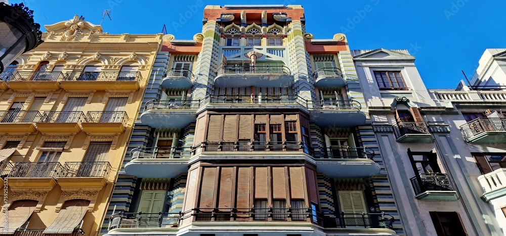 Obraz na plátně Jewish house facade buildings city Valencia modernist old town tourism colors st