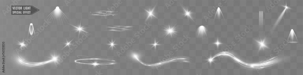Obraz na plátně Light white wave and spotlight shine effect,glow line sparkle shine