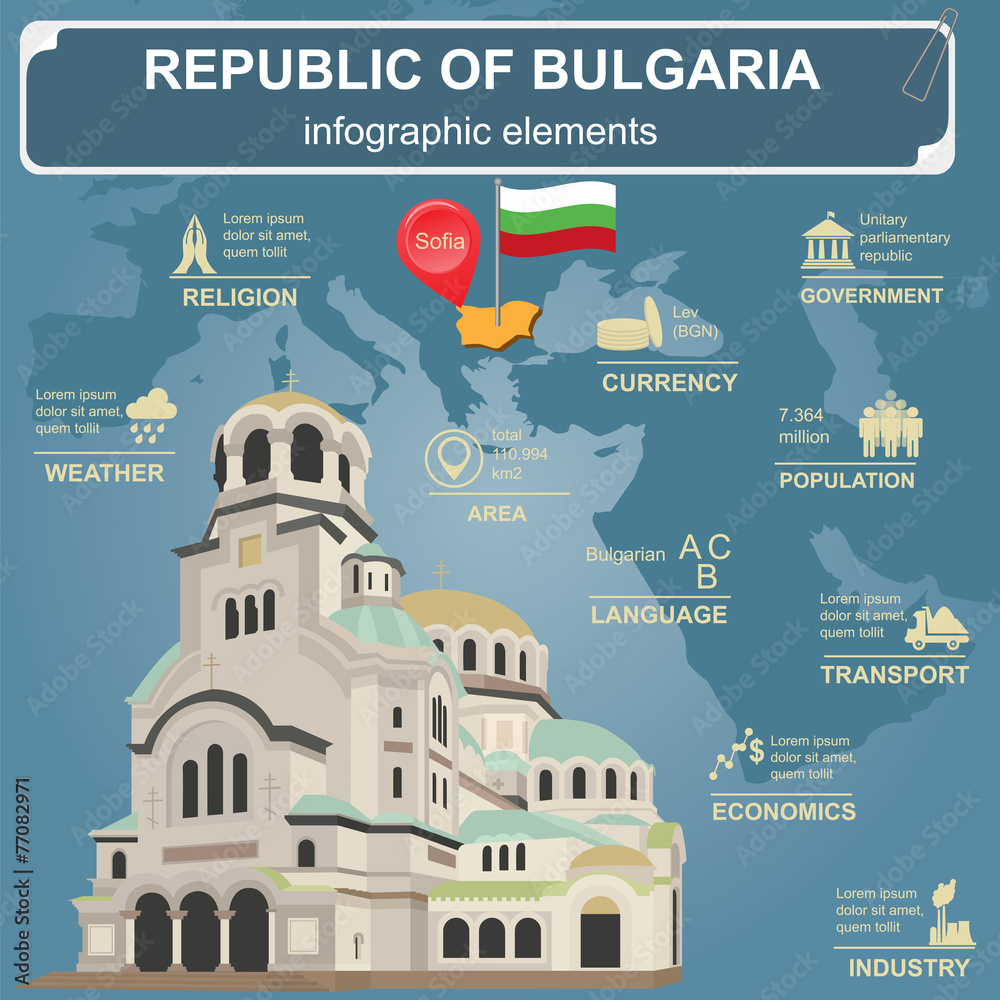 Obraz na plátně Bulgaria infographics, statistical data, sights