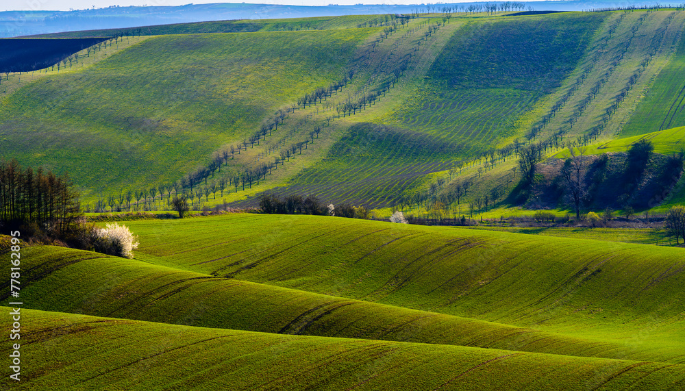 Obraz na plátně Moravia, spring, field, landscape, biobelts, ribbon,