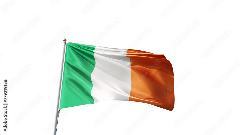Obraz na plátně irish flag on a transparent background, waving in the wind, ireland flag on a bl