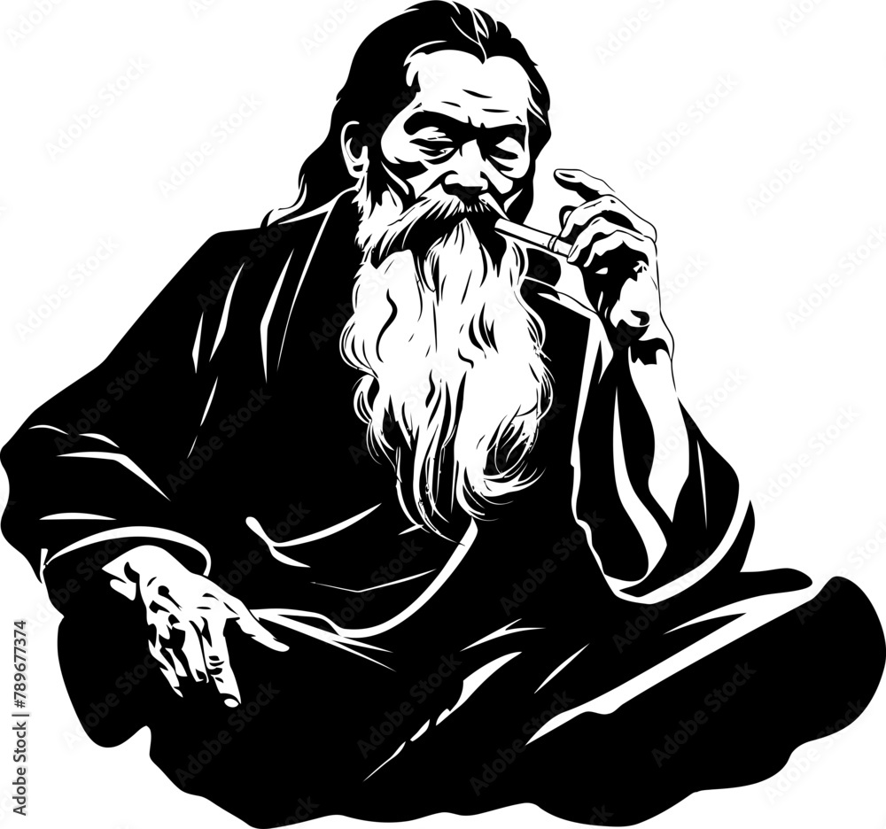 Obraz na plátně Eternal Emanation Old Asian Smoker Design Vintage Vapor Long Bearded Gentleman E