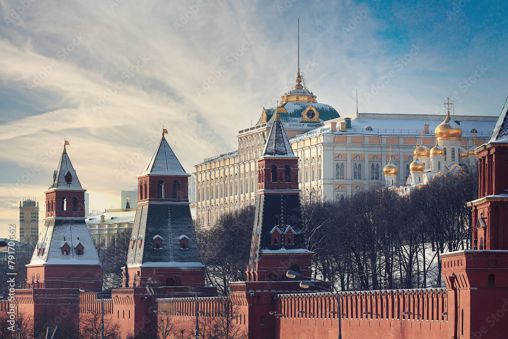 Obraz na plátně Moscow Kremlin Cathedral winter landscape embankment