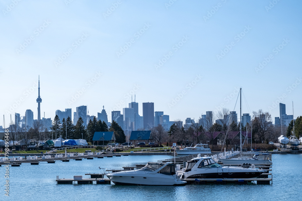 Obraz na plátně Toronto skyline and boats in marina spring