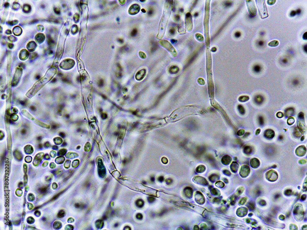 Obraz na plátně photo of fungi spores and mycelium under the microscope