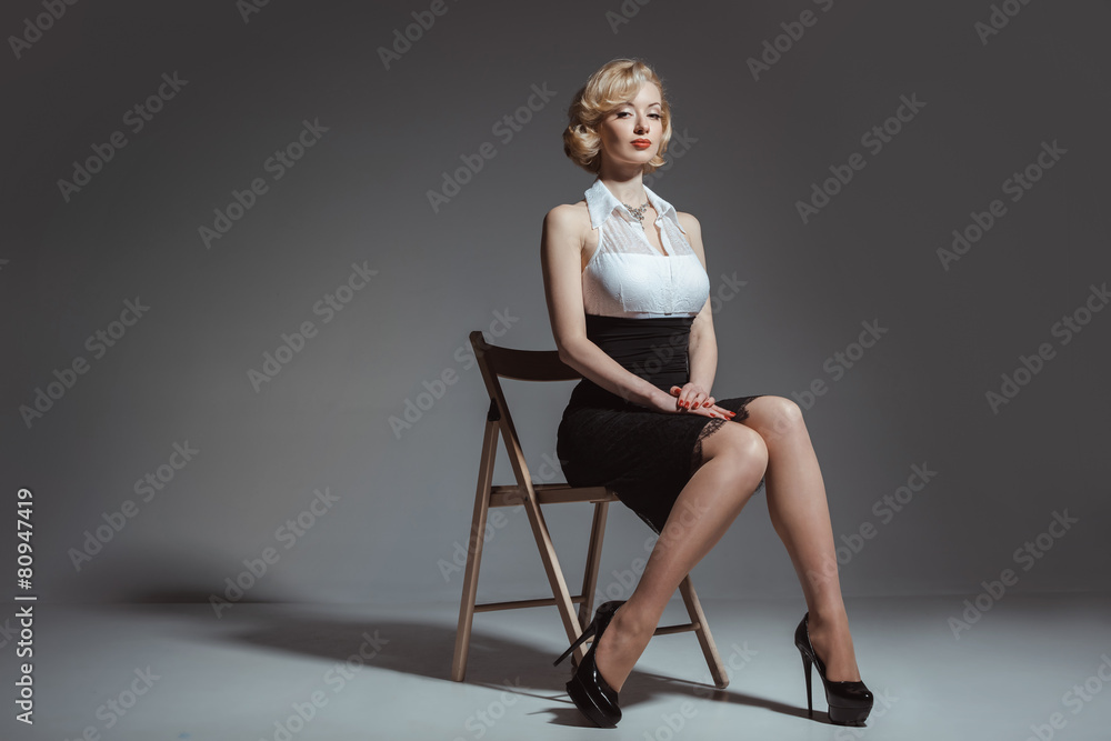 Obraz na plátně Pin-up girl young and beautiful woman portrait on gray