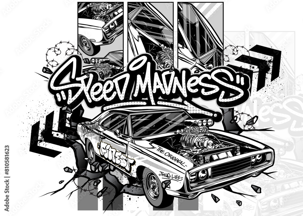Obraz na plátně Car Graffiti Vector Illustration