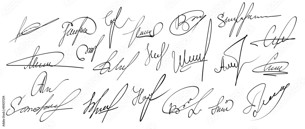 Obraz na plátně Autograph or business signature of facsimile handwritten by pen, isolated vector set