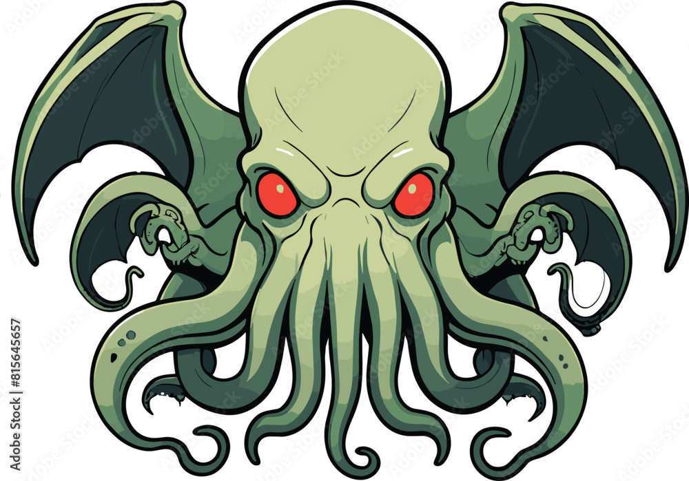 Obraz na plátně Vector illustration of a mythical Cthulhu with red eyes against a white backgrou