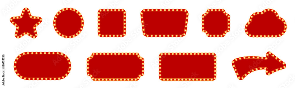Obraz na plátně Realistic retro square, circle, star and cloud shape marquee billboard for decoration