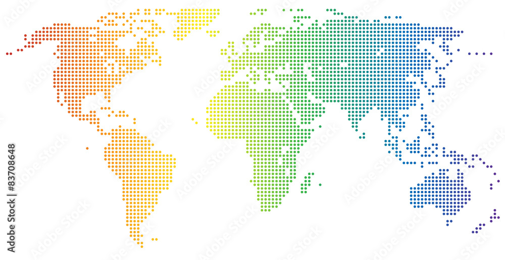 Obraz na plátně Weltkarte - gepunktet in den Regenbogenfarben