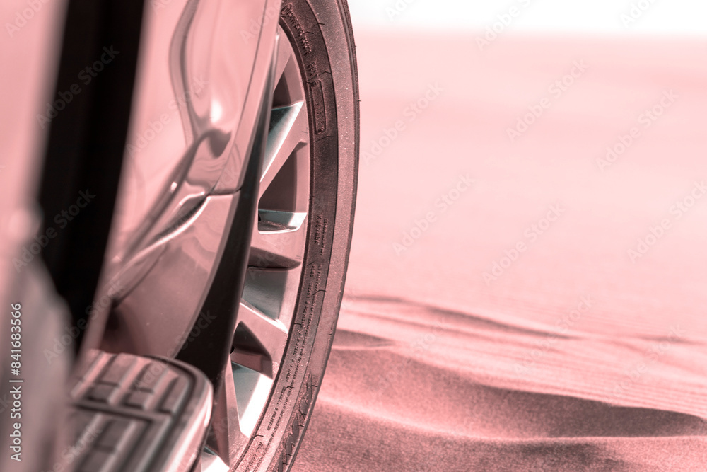 Obraz na plátně Close up of a golden car stuck in the sand in the Namib desert.