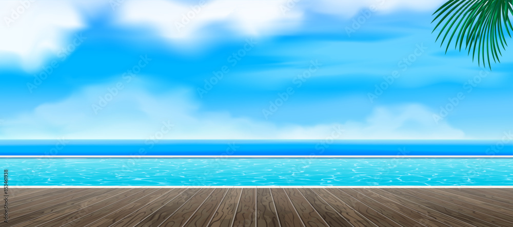 Obraz na plátně swimming pool wooden deck ocean view tropical resort poolside summer vacation v