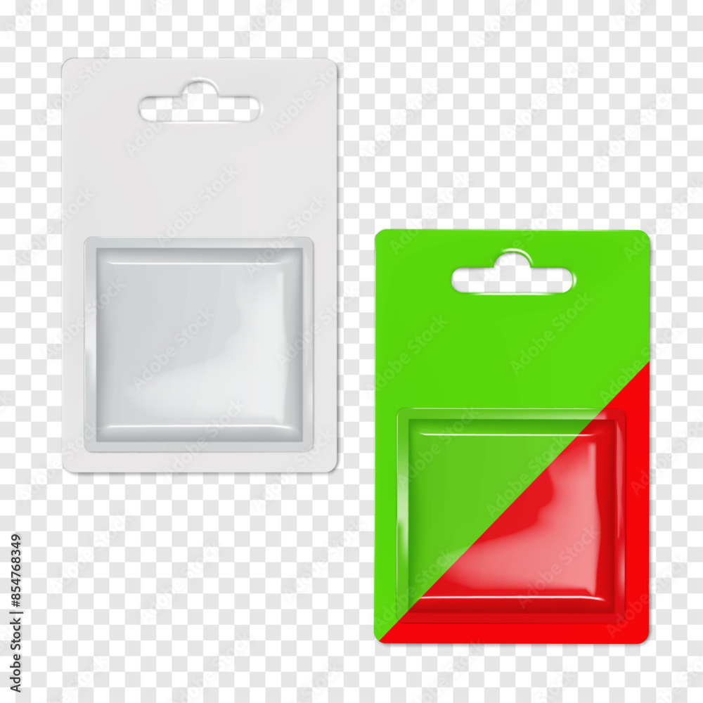 Obraz na plátně Hanging cardboard and clear plastic square blister box