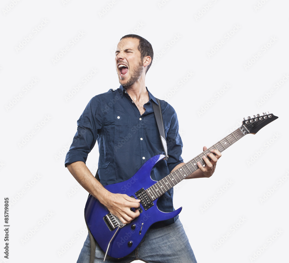 Obraz na plátně handsome young man playing electric guitar