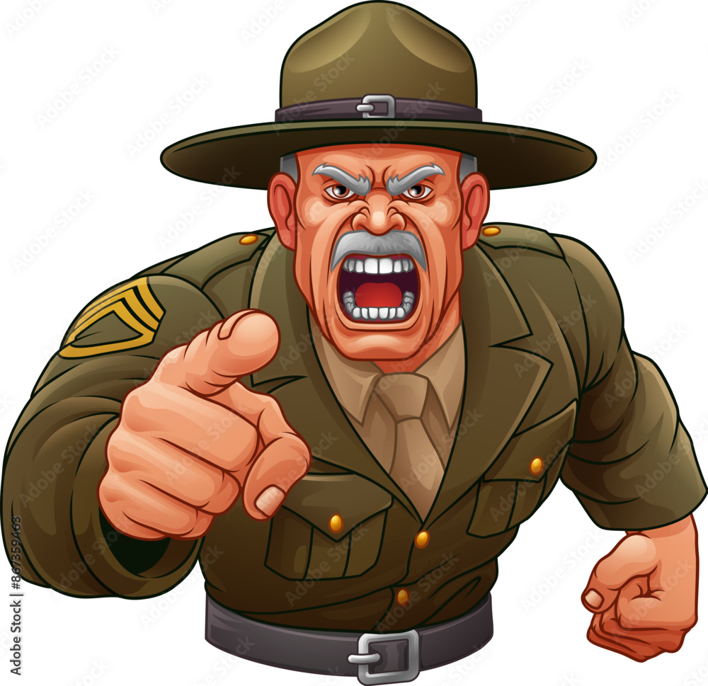 Obraz na plátně An angry drill instructor or sergeant bootcamp army soldier cartoon character