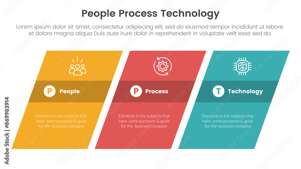 Obraz na plátně PPT framework people process technology infographic 3 point with rectangle skew