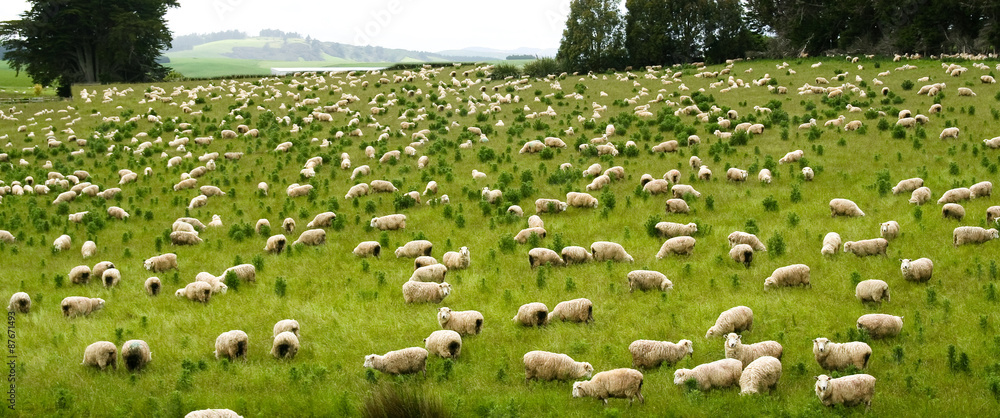 Obraz na plátně Sheep grazing in Nea Zealand