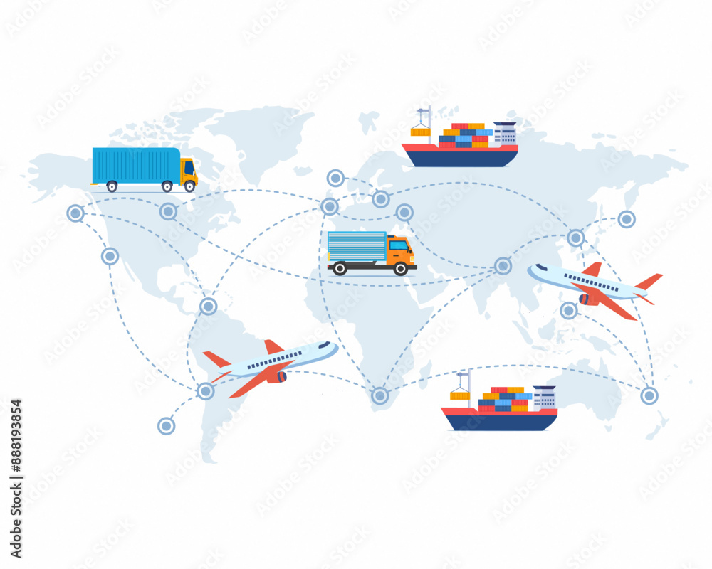 Obraz na plátně global logistics network worldwide shipping by air and sea fright transport impo