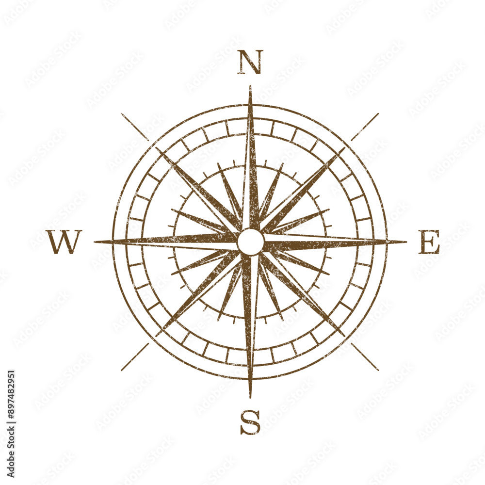Obraz na plátně Vector Vintage Wind Rose Symbol, Compass Icon Closeup, Isolated
