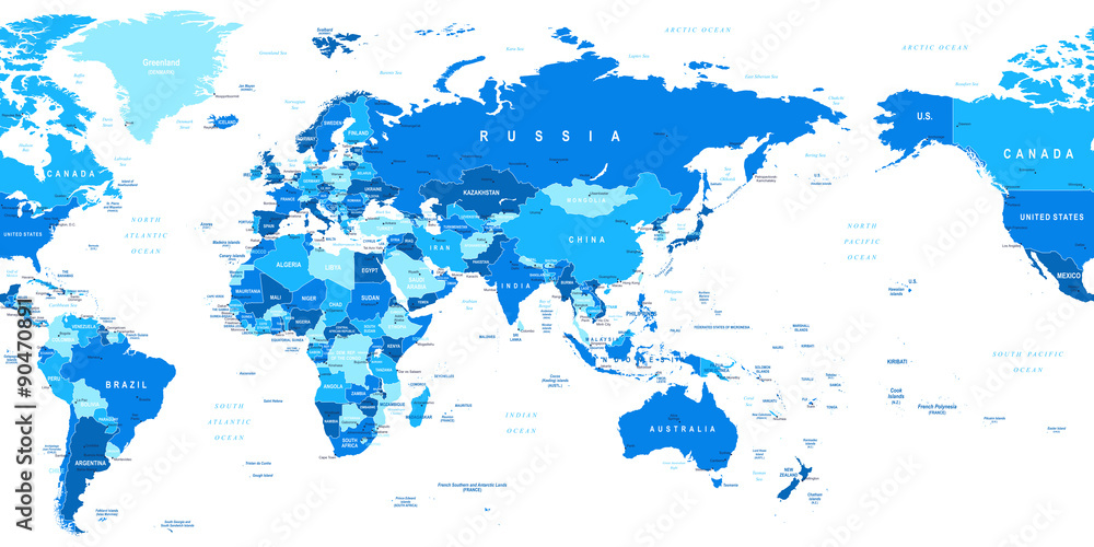 Obraz na plátně World Map - Asia in center