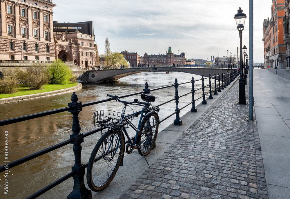 Obraz na plátně Gamla Stan, view of the embankment in Stockholm, the capital of Sweden