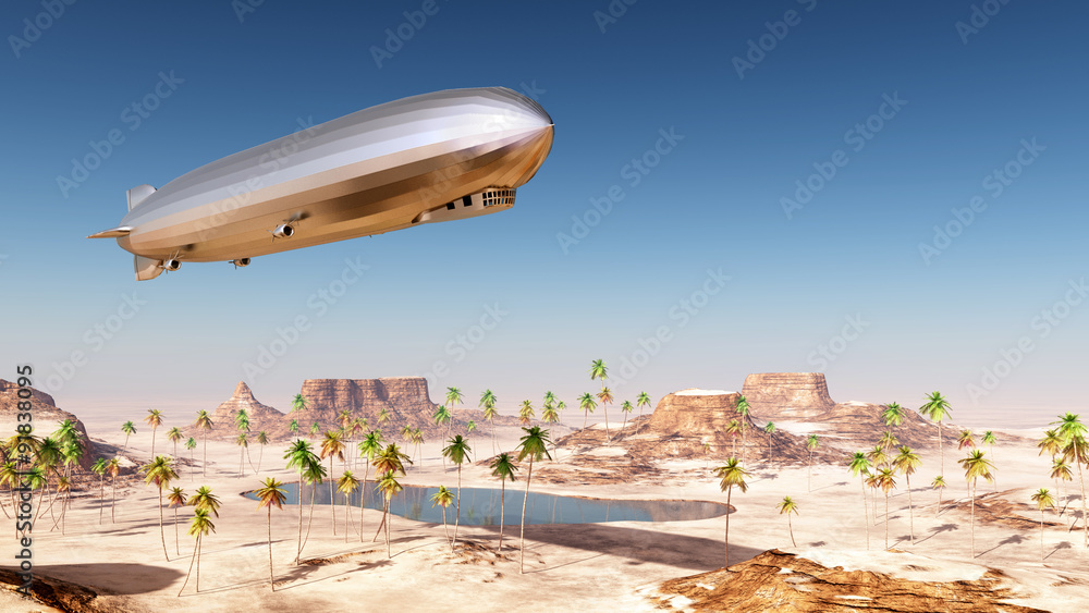 Obraz na plátně Luftschiff über einer Wüstenlandschaft