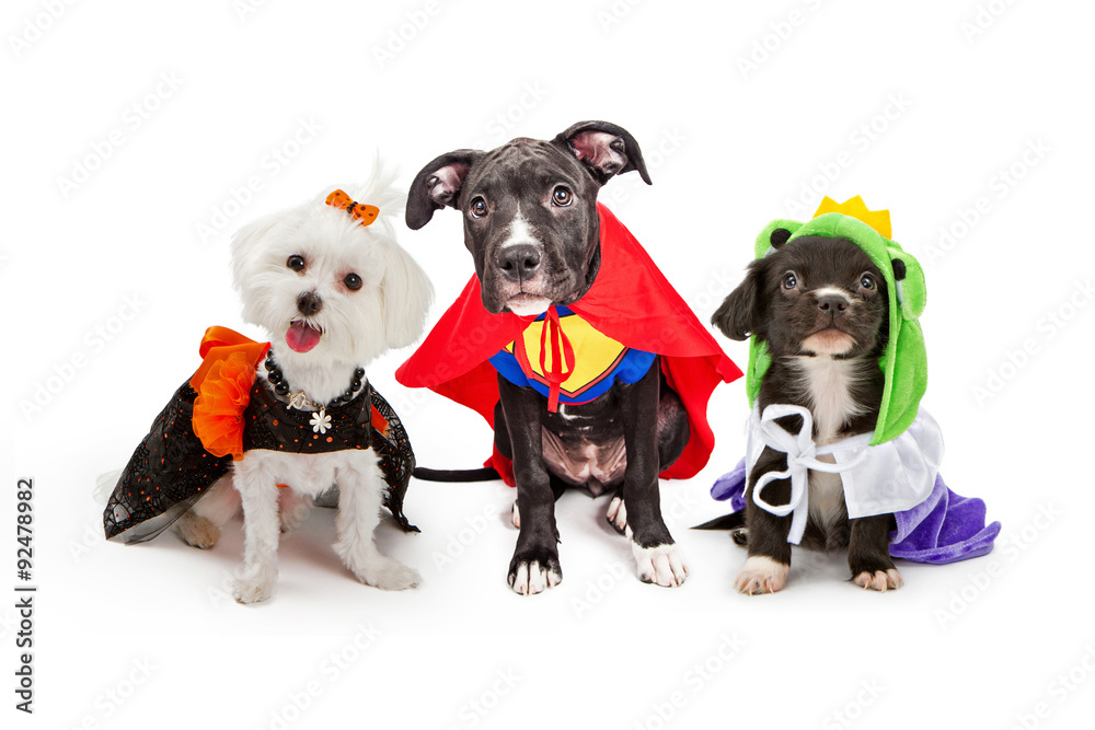Obraz na plátně Cute Puppy Dogs Wearing Halloween Costumes