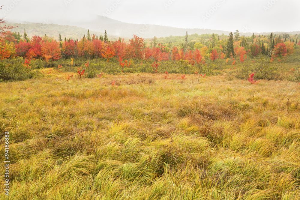 Obraz na plátně Colorful fall foliage in wetlands near Rangeley, Maine.