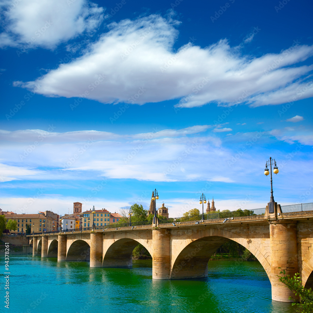 Obraz na plátně Way of Saint James in Logrono bridge Ebro river