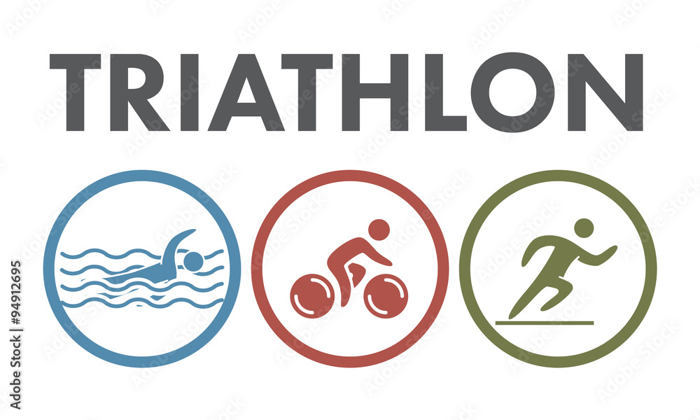 Obraz na plátně Triathlon logo and icon. Swimming, cycling, running symbols