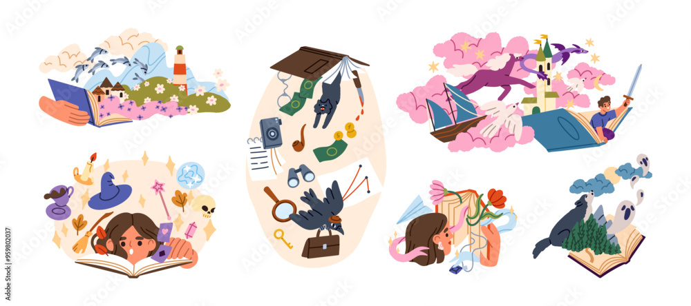 Obraz na plátně Book reading and fantasy imagined worlds adventures through fairytale and fiction