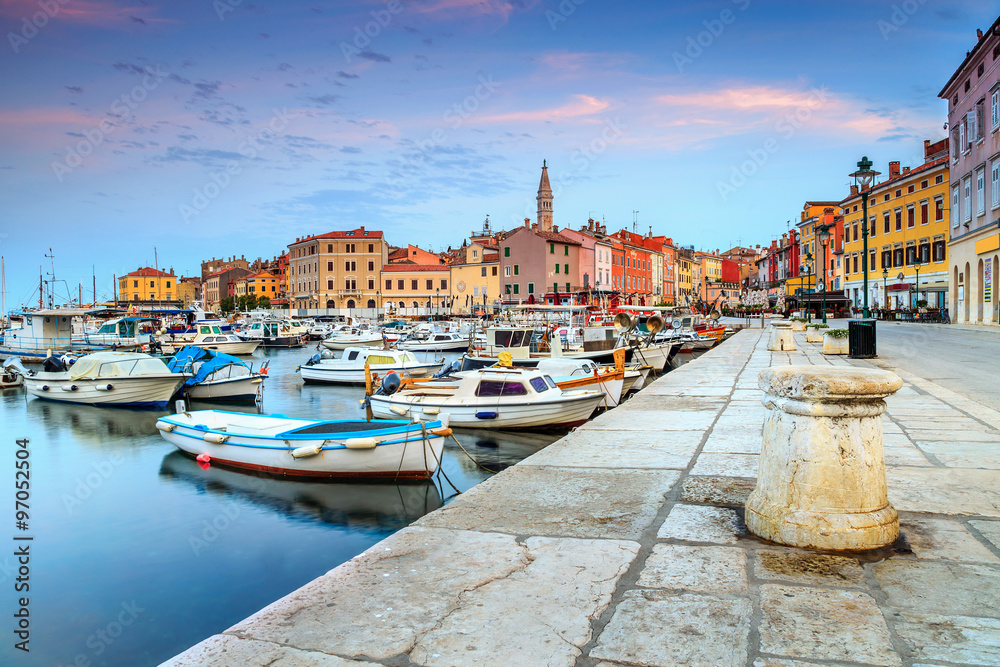 Obraz na plátně Beautiful dawn with Rovinj old town,Istria region,Croatia,Europe