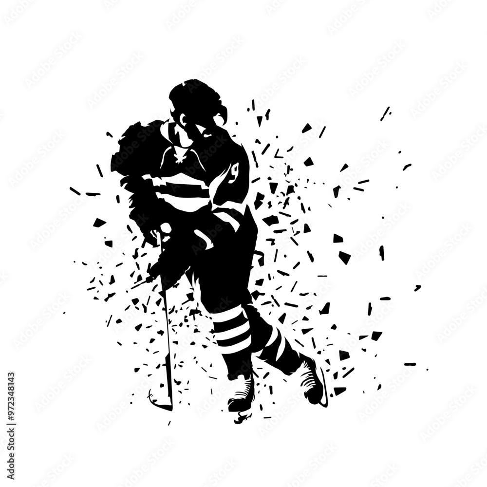 Obraz na plátně Ice hockey player, isolated vector silhouette, winter sports athlete, ink drawin