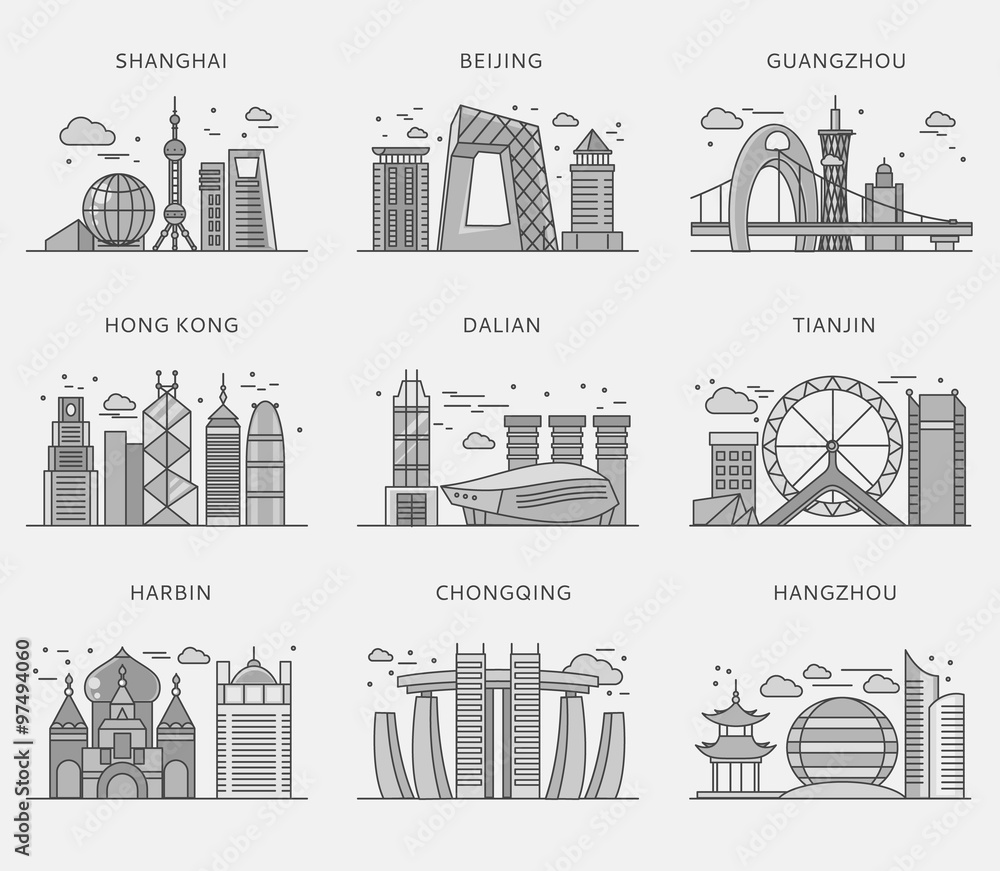 Obraz na plátně Icons Chinese Major Cities Flat Style