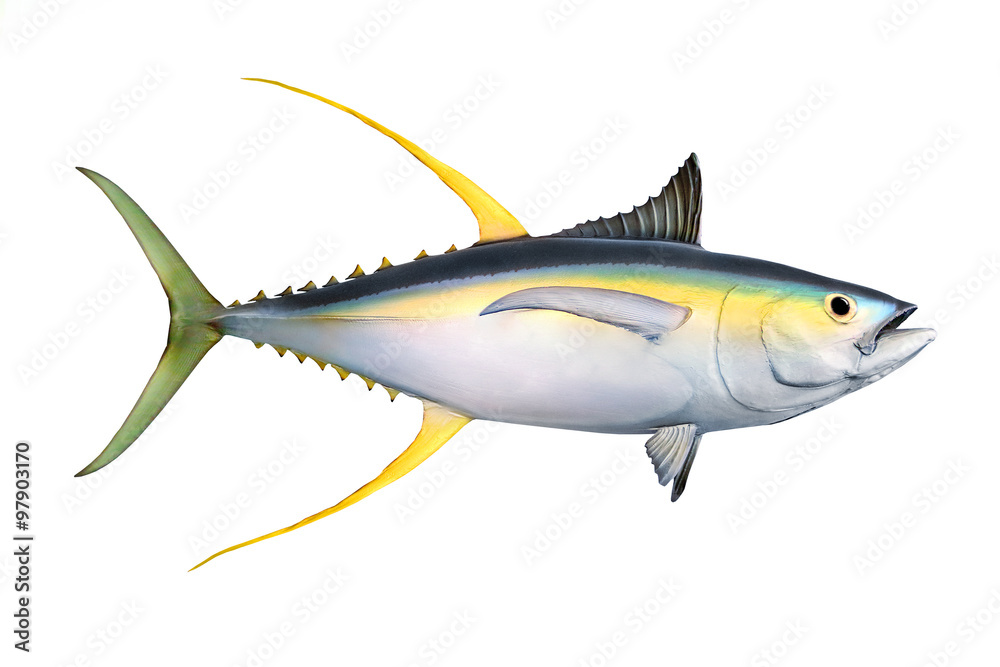 Obraz na plátně Yellow fin Tuna (Thunnus albacares) isolated on white background.